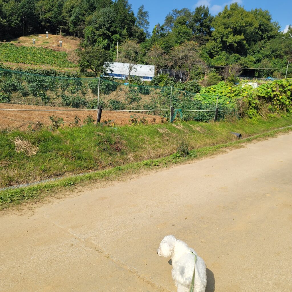 작은 논밭, 바람에 흔들리는 억새, 멀리서 들리는 개 짖는 소리가